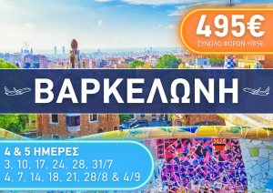 Βαρκελώνη | 4 & 5 Ημέρες 11 Ιουλίου 2025 Travel codeΑΕΡΟΠΟΡΙΚΑ ΕΙΣΙΤΗΡΙΑ, Εβδομαδιαίες Εκδρομές, Καλοκαίρι 2025 Για περισσότερες πληροφορίες ή κρατήσεις παρακαλώ επικοινωνείστε μαζί μας στο 2521026961 ή 2521027020